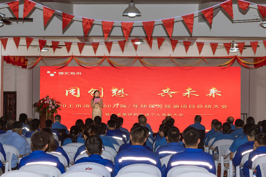 大會在熱烈的氣氛中隆重舉行。會上,環保芳烴油項目總經理陳成元及IPO項目負責人、公司副總經理兼董秘尤丹紅分別做了項目總結報告,總結了項目過去幾年實施過程中的情況。